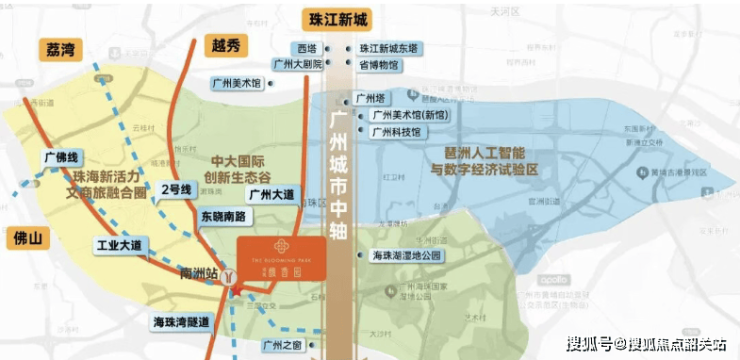 地铁实测:项目地下连廊直通南洲站(2号线/广佛线交汇),3站达客村,5站达珠江新城/琶洲,7站通万博/金融城/白鹅潭商圈。