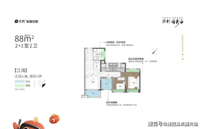 88平方米户型主打东南向,部分单位可欣赏海景。四开间朝南,全景采光,独立主卧带双飘窗,南北对流。阔绰的景观阳台,纵深达2米,提供了充足的户外活动空间。无论是清晨看日出,还是傍晚观晚霞,都能在这里找到最佳的观赏点。这款户型将自然景观与室内生活完美融合,是追求品质生活的理想之选。