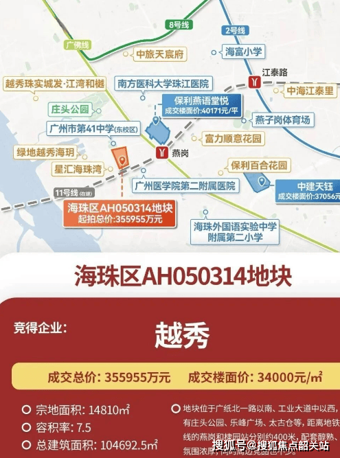 2025年9月19日,广纸314地块正式出让,越秀地产以楼面价3.4万/㎡、总价35.6亿元成功拿下,这一地块也就是如今的越秀·熙悦江湾。要知道,越秀地产深耕广州41年,深刻理解广州市场、气候和人文生活,此次布局广纸板块,也是看中了板块的成熟配套和发展潜力,旨在打造一款贴合广府人居需求的标杆作品。
