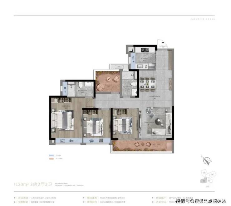 和同面积段的三房户型相比,这里多出的灵动百变空间可随心改造,大大提升使用率。