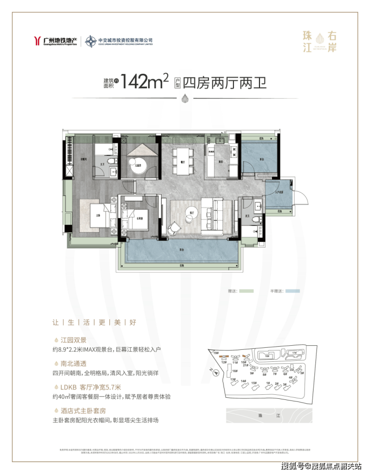 四开间朝南,主卧还采用南北对流设计,观景阳台长达近8米……