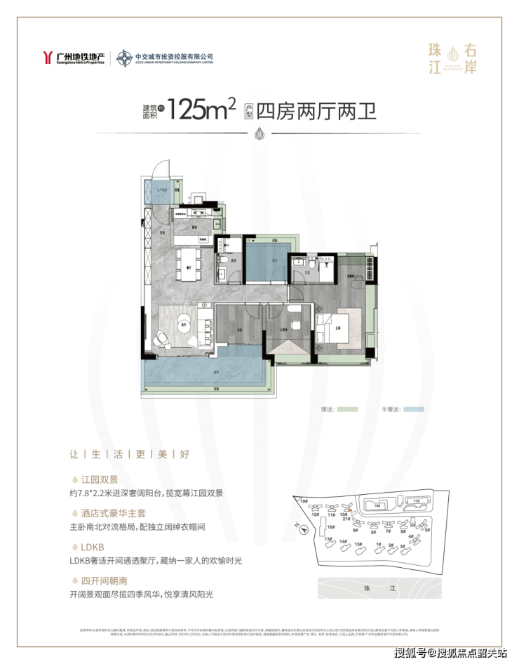 最小的建面约125平四房两卫,设计上也是颇花心思。