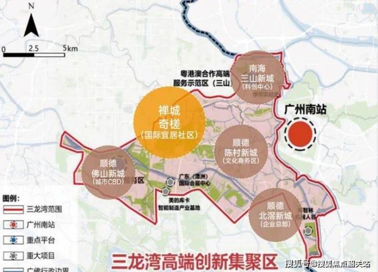 三横--季华路(接驳禅桂核心)、绿景路(往亚艺板块)、魁奇路(往禅城)及魁奇路东延线(往广州南站)