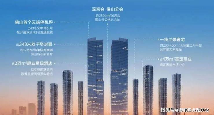 小区配套:约12万㎡超写字楼(248米)、超2万㎡酒店、超4万㎡商业以及住宅等多种业态,并规划打造深湾会·佛山分会会址(约2500㎡会所空间),并于约248米高度设云端停机坪等。