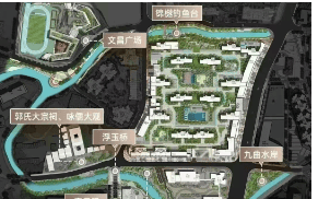 项目虽未集萃梁园造园之精髓,但花地河支流环绕,形成玉带环腰格局,南北水系串联生活区域,下楼即享河景资源。园林打造用心,绿地面积约 1.8 万方,综合容积率约 3.94,低于荔湾在售项目,营造出自然舒适的居住环境,让业主在生活中感受自然之美。