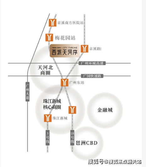 位居广州中轴线,紧邻地铁 3 号线梅花园站,距离仅 200 余米,步行 4 分钟可达,乘地铁 5 站直达珠江新城。周边在建的 18 号线北延段京溪路站预计 2026 年开通,届时 1 站到广州东站,2 站到冼村,3 站到琶洲。自驾可借助广州大道北、沈海高速等线路,30 分钟内可前往金融中心,无论自驾还是地铁出行,40 分钟内可畅达珠城、琶洲、越秀等地。