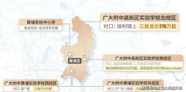 5.28新政后,这对刚需无疑是一个巨大的利好消息!目前,广附系学校在黄埔布局有5所,主要有:黄广附东/西校区、黄埔军校中小学、以及广大附中高新校区南/北校区。新房项目中价格最实惠的,有且仅有对口广大附中高新实验学校北校区的保利锦上:总价210万+,即可入手南向三房。