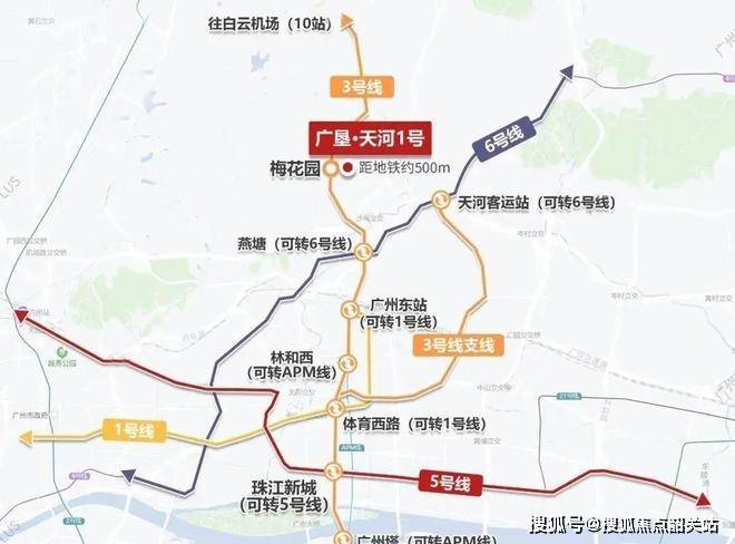 先说位置,这是很多人最先关心的点。项目紧挨地铁3号线梅花园站B出口,走路大概400米左右。3号线是广州南北向的主动脉,从这里出发,2站直达广州东站,5站就到珠江新城核心,通勤到天河北、体育西、珠江新城这些商务区基本都在15分钟以内。早高峰挤地铁的人都知道,时间控制在15-20分钟和40分钟以上是完全两种体验。短通勤意味着每天能多睡半小时、多喝一杯咖啡,也少了很多因为堵车或换乘带来的烦躁。不少在珠江新城上班的白领、创业者,或者需要在广州东站频繁出差的人,把这里当成日常通勤的理想落脚点。