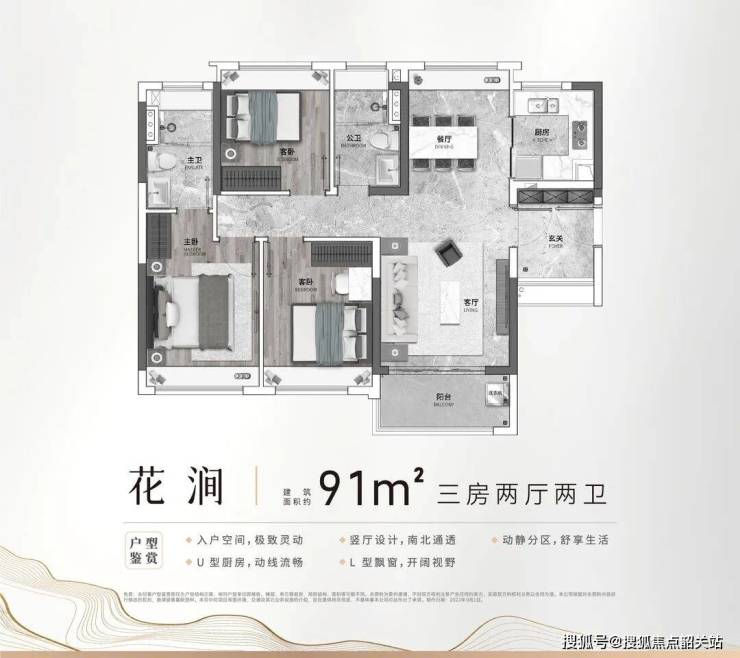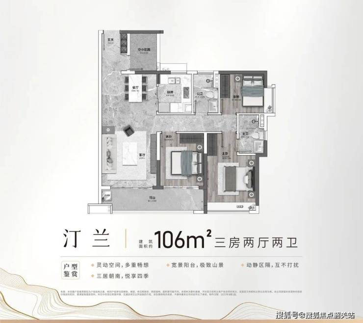 龙狮璟珑府户型涵盖91㎡舒适三房、106㎡高效三房、142㎡奢阔四房及168㎡纯改善四房。所有户型均采用南北通透设计,实现自然通风与采光。91㎡三房动静分离,主卧套房设计,配独立入户玄关,提升私密性;106㎡三房拥有阔景阳台,客厅与卧室连通,采光视野极佳。