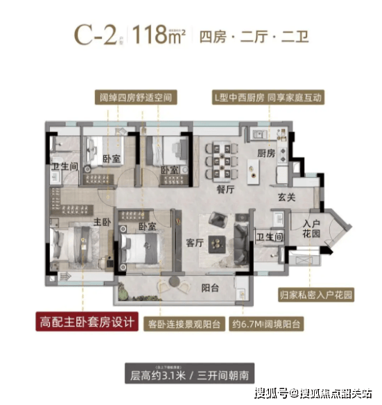 对于追求更大居住空间的改善型客户,118至137平方米的四房户型无疑是更好的选择。这些户型在空间尺度上进行了进一步的提升,配备了6.1至9.4米的宽景阳台,3.1米的层高增强了室内的开阔感。动静分区的合理设计,使得家庭成员的活动互不干扰,无论是三口之家还是三代同堂,都能在其中找到舒适的居住节奏。特别是那些带有山景视野的户型,更是将自然景观引入了室内,让人在居家生活中也能感受到大自然的馈赠。