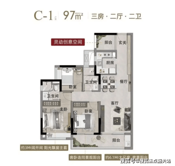 在现代家居设计中,空间的高效利用和家庭成员的互动性是衡量户型优劣的重要标准。中国铁建花语天宸在售的97平方米三房两卫户型,正是这一设计理念的完美体现。该户型采用了LDK一体化设计,即将客厅(Living Room)、餐厅(Dining Room)和厨房(Kitchen)三个功能区域打通,形成一个开放式的公共空间。