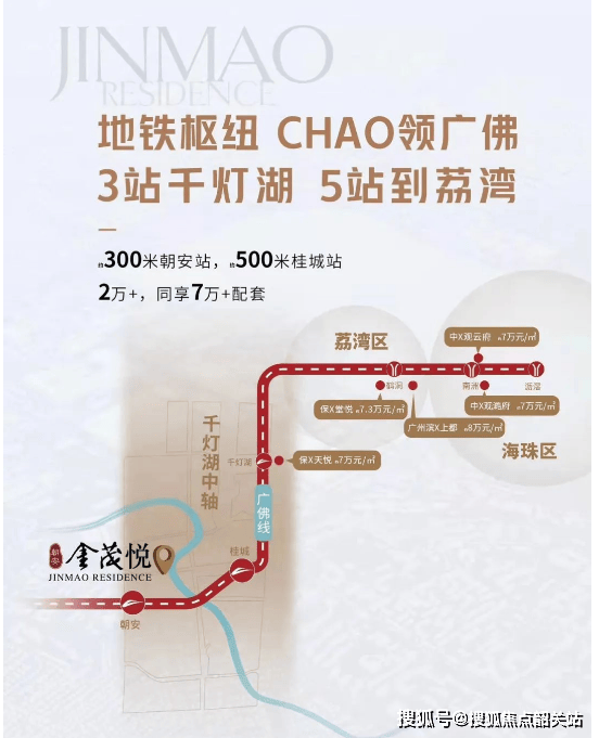 朝安金茂悦所在的板块借助广佛线的交通优势,助力打造广州不可复制的 “黄金动脉”。项目位于广佛交界处,是广佛同城化发展的重要节点,依托广佛线这条重要的轨道交通线路,板块与广州核心区紧密相连,成为连接广佛的重要纽带。
