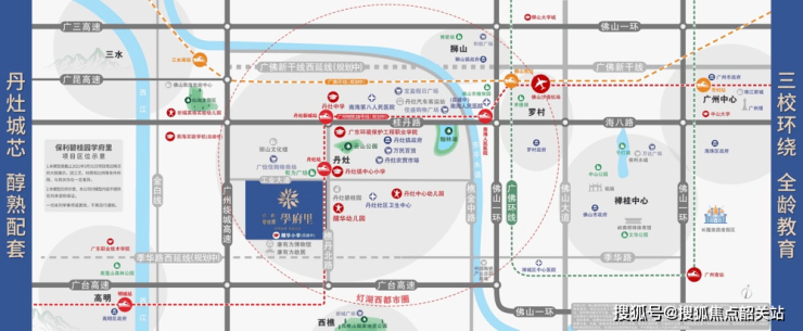 保利碧桂园学府里依托桂丹路这一城市快速通道,构建高效通勤网络。桂丹路全程限速80–100公里/小时且无红绿灯,驾车约10分钟可达狮山及佛山西站枢纽,15分钟至罗村,30分钟直抵禅城、桂城核心区,50分钟畅达广州荔湾、白云、越秀等老城区,极大缩短广佛双城生活的时间成本。未来,规划中的广州地铁28号线拟设丹灶站,将向东串联佛山西站、南海之眼,并延伸至广州越秀,进一步融入广佛轨道一体化网络。此外,季华路西延线、广佛新干线西延线等重大交通工程也在推进中,区域路网能级将持续提升,为业主提供“多睡十分钟”的高效出行体验。