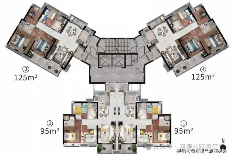 项目当前主力在售建面 95 平方米三房、建面 125 平方米四房户型,全系户型单层净高 3 米,楼栋统一 2 梯 4 户布局。户型整体方正通透,采光面充足,室内动线流畅,功能分区完整,卧室休憩区与客餐厅活动区互不干扰,空间利用率高,适配刚需首置、刚改家庭长期自住,毛坯交付支持业主自主个性化装修改造。