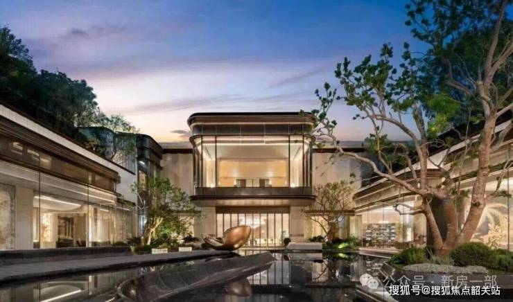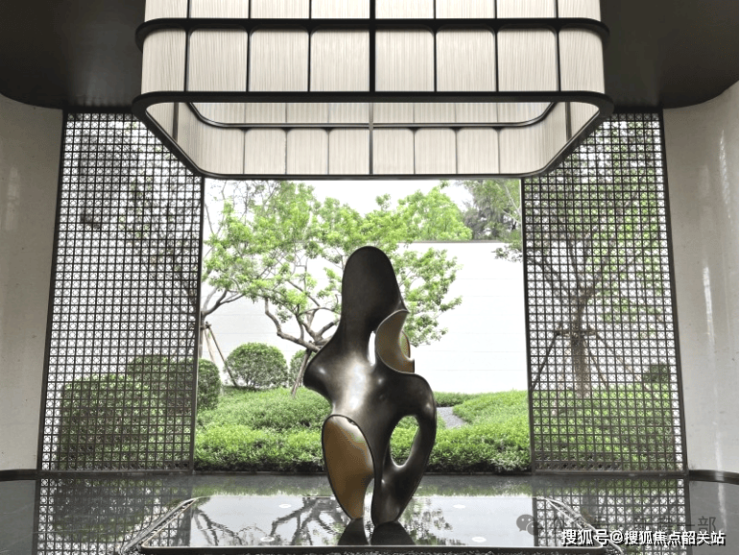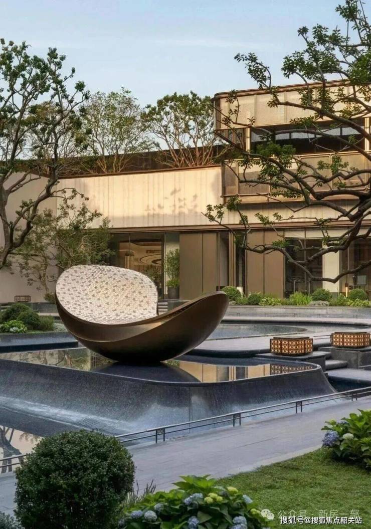 下沉庭院以精致金属线条搭配玻璃材质,极具现代时尚。前庭水景设艺术雕塑和繁茂绿植,镜面透出建筑倒影,自然且舒适。