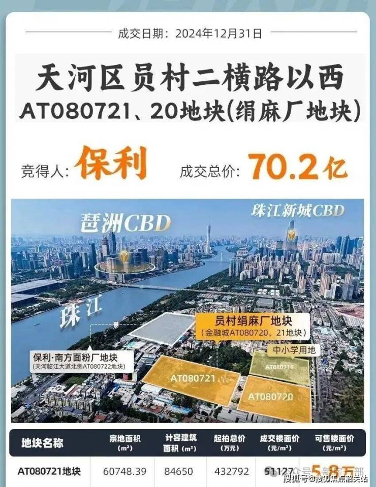2024年12月31日,保利以总价70.2亿元底价拿下绢麻厂地块,分为两个地块,AT080720地块在北面,楼面价为5.07万/㎡;AT080721地块在南面,楼面价为5.11万/㎡。