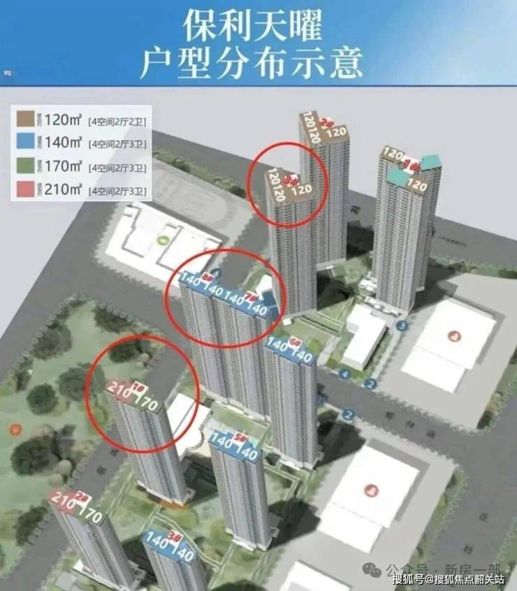 保利天曜分为南北地块开发,其中南地块是板楼设计,共有8栋楼,北地块是塔楼设计,共有3栋楼。