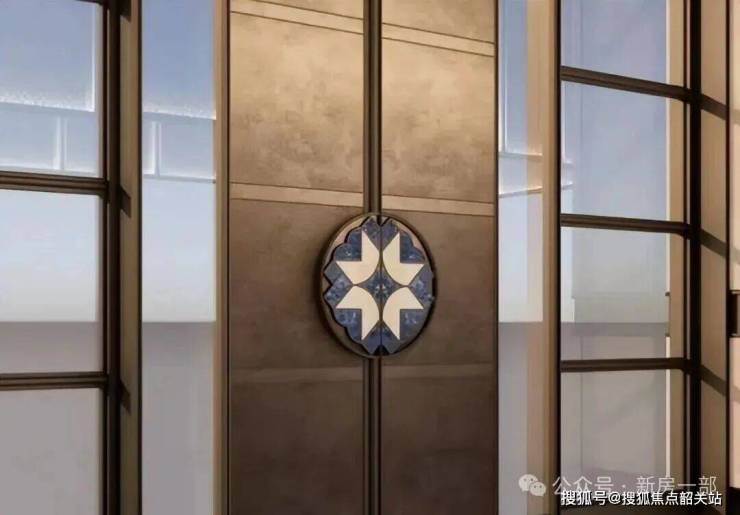 省级非遗大师杨志峰定制牡丹胎画珐琅门把手,以八芒星logo为脉络形成的珐彩福门是会所一楼空间的总起。