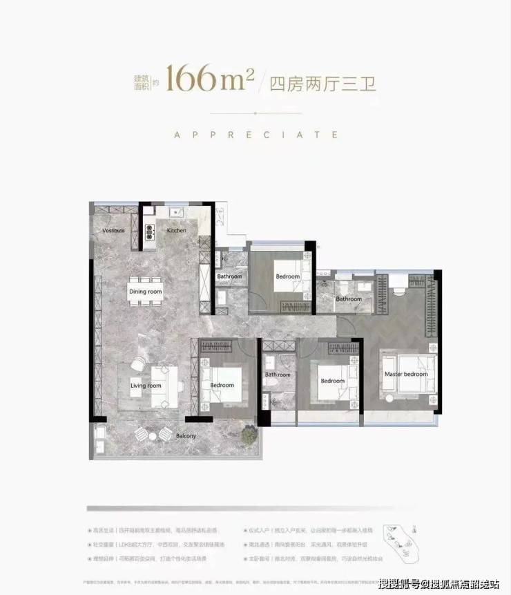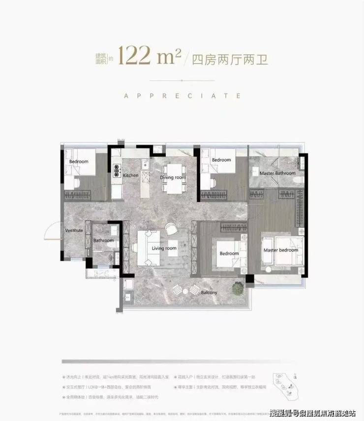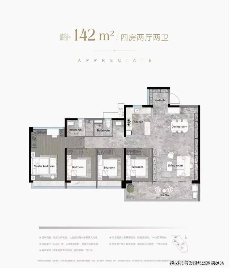 在售户型: 103-186㎡超新规四房,均价5.1万/㎡;