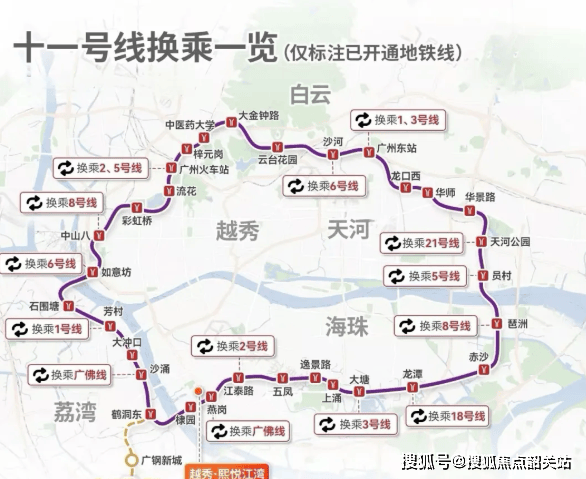 首先是被誉为“换乘之王”的广佛线燕岗站,距离项目仅约400米(百度地图直线距离)。广佛线不仅是连接广州与佛山的交通大动脉,更是串联起海珠、荔湾等老城区的黄金线路。通过燕岗站,业主可以快速抵达广佛两地的核心商圈,享受双城生活的便利。更重要的是,燕岗站还是广州首条黄金环城线——11号线的换乘站点。这意味着,在这里乘坐地铁,可以实现无缝换乘,直达全城各个角落。