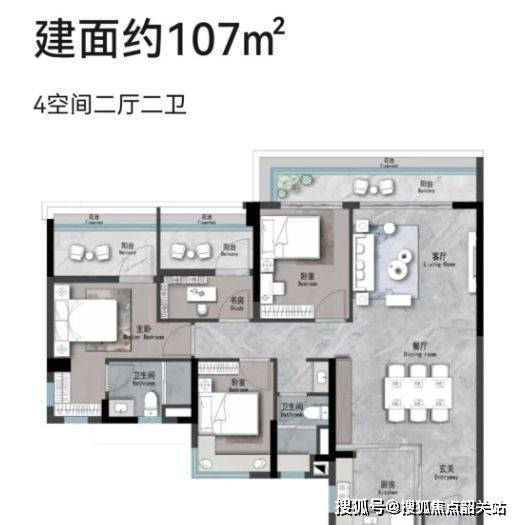 客厅、餐厅、厨房形成核心公共区,卧室区域相对独立,既保证互动,又兼顾私密。