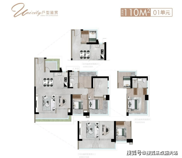 再看建面约141平方米的全能舒居四房,其在空间尺度上进行了进一步升级。入户处特设了宅间花园,为住户提供了种植花草或设置休闲座椅的过渡空间,让归家过程充满诗意。全南阔境光幕阳台贯穿多个房间,将江景与公园景观最大程度地引入室内。四个卧室的布局兼顾了全龄段居住需求,无论是二胎家庭还是三代同堂,都能找到合适的居住方案。主卧更是挑战了江景环幕的视野极限,星级主卧套房设计搭配杜拉维特等一线品牌的卫浴设施,礼遇菁英阶层的星级体验。