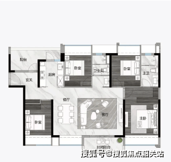 112㎡ 3+1房2厅2卫:两梯四户,LDKB一体化设计,全屋80cm阔景飘窗。