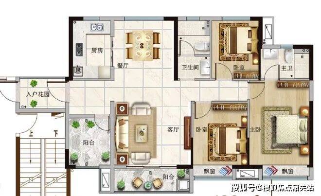 120㎡户型(四房两厅两卫,南北通透)
