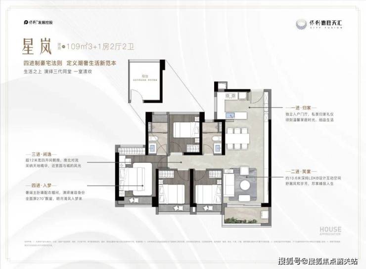 保利德胜天汇推出建面约109 - 260㎡的四房户型,满足不同家庭结构与生活需求。建面约109㎡的3 + 1房2厅2卫户型,空间布局紧凑合理,通过灵动的空间设计,满足家庭成长过程中的多样化需求,可作为温馨的三口之家或四口之家的理想居所。