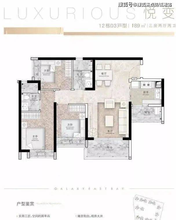 精装交付标配全屋智能家居,89㎡户型得房率达82%,139㎡户型主卧带270°转角飘窗。