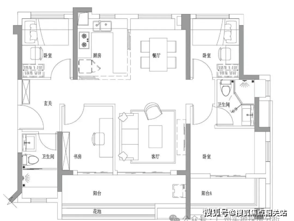 98㎡四房两卫:南北对流,开放式厨房便于照看孩子,书房与客厅灵活合并,营造豪宅级舒适感;