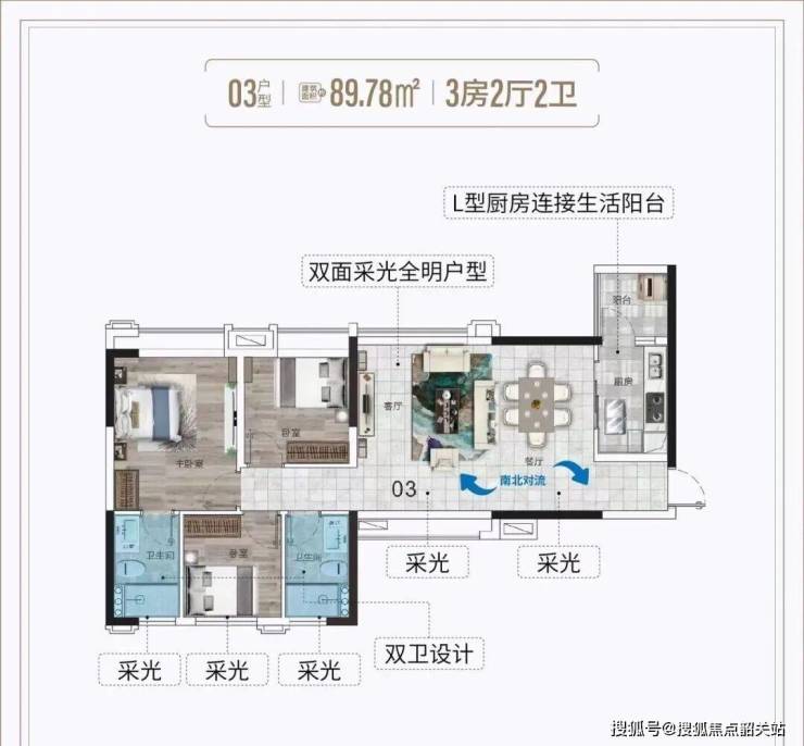 ▶ 89㎡三房:南北对流“小机灵”,偷偷把珠江和小蛮腰装进窗框!🗼