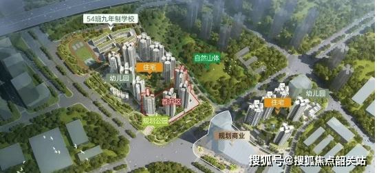 配建设施:54班九年一贯制学校、双幼儿园、规划公园、商业
