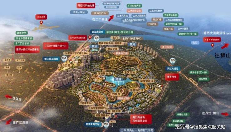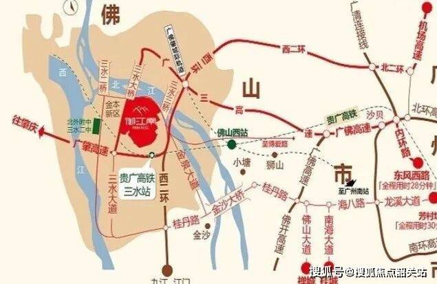 项目距离地铁4号线(规划中)的站点直线约1.2公里,虽然目前尚未开通,但现有路网已足够支撑日常出行。从金泉大道上广佛肇高速,早高峰开车到广州白云新城大约35分钟;打车到三水南站约10分钟,高铁一站直达广州南站。未来三水三桥建成后,去三水新城核心区会更便捷,现在开车也就15分钟左右。