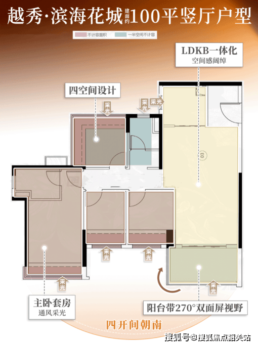 例如,建面约89㎡三房做到三卧室均享270°观景面,并配备主卧套房;约100㎡四房则提供横厅与竖厅双选择,横厅版阳台开阔,竖厅版动静分区合理,均采用新规115%实用率标准,得房率优于市场平均水平。
