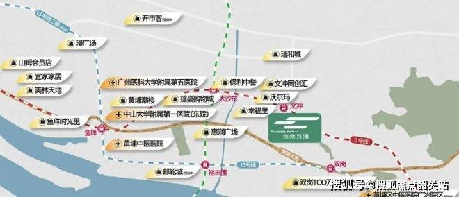 生活配套非常完善。项目位于老黄埔核心文冲板块,随着珠金琶 - 鱼珠 CBD 一体化,融入广州顶级配套阵营,30 分钟畅享珠金琶高浓度生活圈。自身规划约 58 万㎡商办业态,打造游逛式商街,自成繁华生活圈。1 公里可达 31 万㎡华润万象系商业(含 12 万㎡购物中心,在建中)、沃尔玛、万科里 mall;5 公里涵盖山姆、宜家、盒马等品质商业。医疗方面,约 2 公里内有中大附属第一医院,广州医科大学附属第五医院(东院区),为居民健康保驾护航。约 1 公里可达黄埔图书馆、广州市第三少年宫、黄埔体育馆,文化休闲设施齐全。周边还有众多公园环绕,3 公里休闲步行范围内有文园山公园、牛山炮台公园等,享受城市中心绿洲的惬意。建筑与园林设计独具匠心,约 64 米显赫门楼,超大尺度门庭设计,兼顾昭示性及仪式感。礼序归家动线结合中心花园形成十字景观中轴,裙楼屋面绿化结合 7.9 米高架空空间打造空中花园,设有邻里会客等功能。汲取海丝文化场景打造度假风园林,以广府骑楼造型打造烟火气十足的骑楼主题商街。现代艺术风美学立面,利用架空层打造 7 大海丝珍宝主题场景,为全龄段业主提供自主式社交的社群中心。