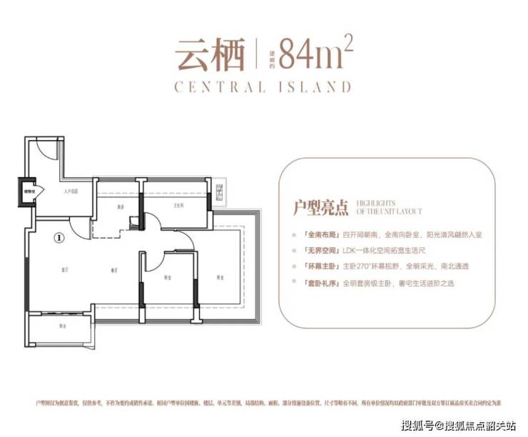 84㎡三房两厅两卫:四开间朝南,全明通透,厨房与卫生间均对外开窗,有效减少潮湿,西南向总价360万起,东南向总价380万起;