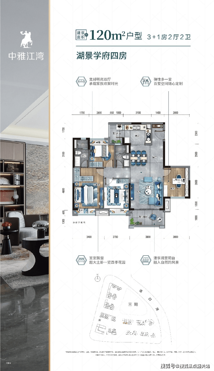 中交雅居乐·中雅江湾雄踞粤港澳大湾区几何中心佛山顺德乐从,总占地约11万方,建面约42万方,规划有28栋高层洋房住宅,产品户型以建筑面积约95-119㎡高附加值三四房单位为主,三面环水,天赋江、湖、园三重珍藏级阔景。
