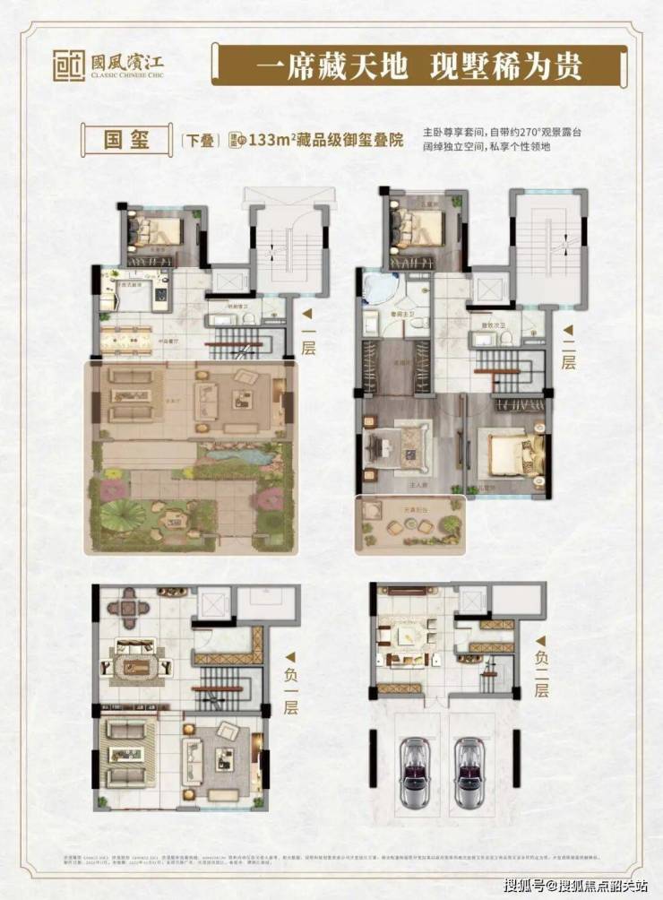 项目主力产品为建面约133–143㎡中心江岸联排院墅,采用罕见双叠设计,摒弃常规三叠、四叠的拥挤布局,确保每户拥有独立入户门厅与私家电梯井。上叠有天、下叠有院,实现“有天有地”的墅居理想;内部空间最高实用率达276%,可灵活拓展家庭影院、酒窖、茶室等功能区。南庭北院、墅级双会客厅、全景落地窗等设计,将东平河景引入室内,重新定义了“城芯院墅”的空间尺度与生活仪式感,在广佛改善市场中树立了真正的豪宅新标杆。