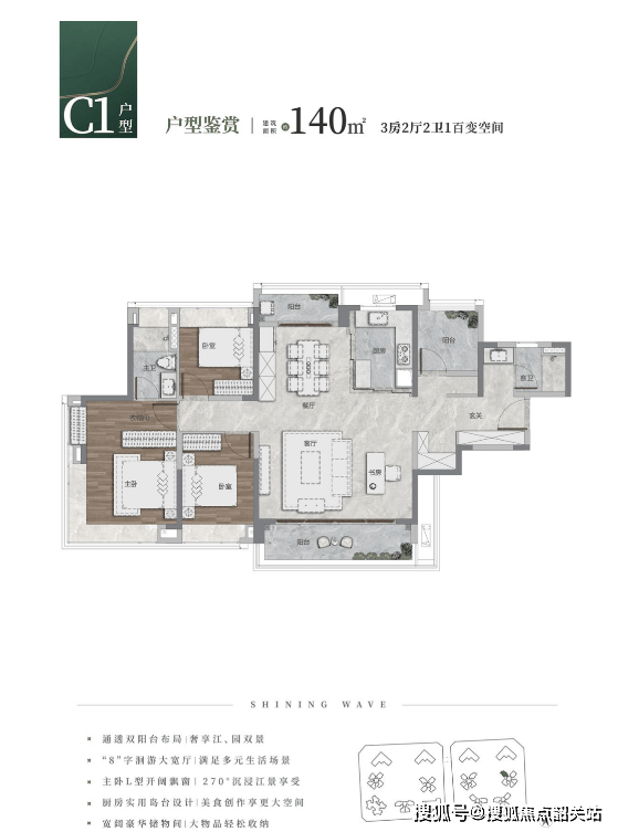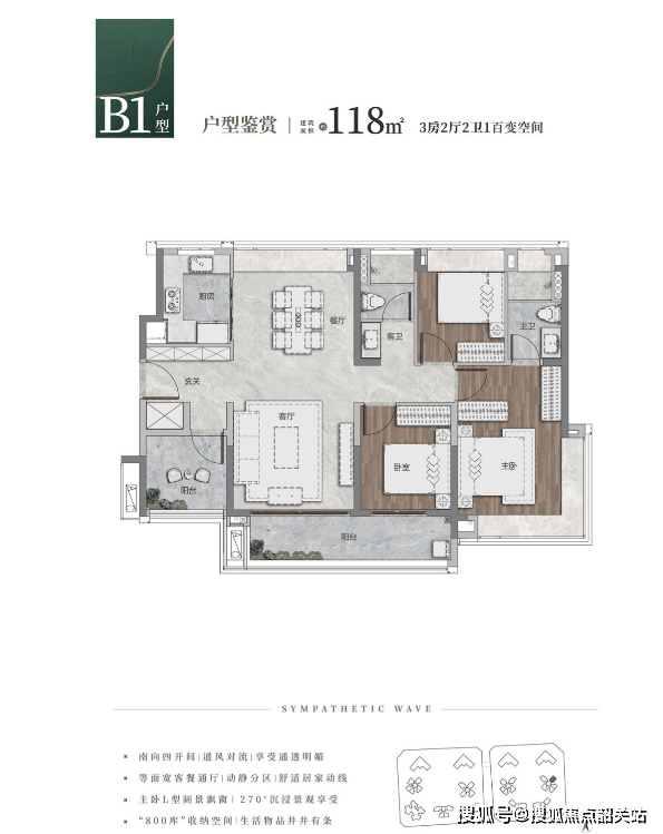 户型设计体现绿城对空间效率与生活仪式感的双重追求。建面约99㎡实现“2+2房”,三面宽朝南,约10米采光面,收纳系统优化;118㎡B1/B2户型均做到四开间朝南,B2更拥有13米南向采光面及双面宽阳台;140㎡大四房配置5.6米宽厅、LDKB一体化公区及L型转角飘窗,尺度媲美传统豪宅。全系注重通透性、景观面与功能灵活性,精装标准延续绿城一贯的细节把控。尽管交付时间需关注工程进度,但凭借“绿城品牌+一线江景+地铁旁+低密新规”的综合优势,桂语汀澜在南沙改善市场中展现出独特的产品力与长期价值潜力。