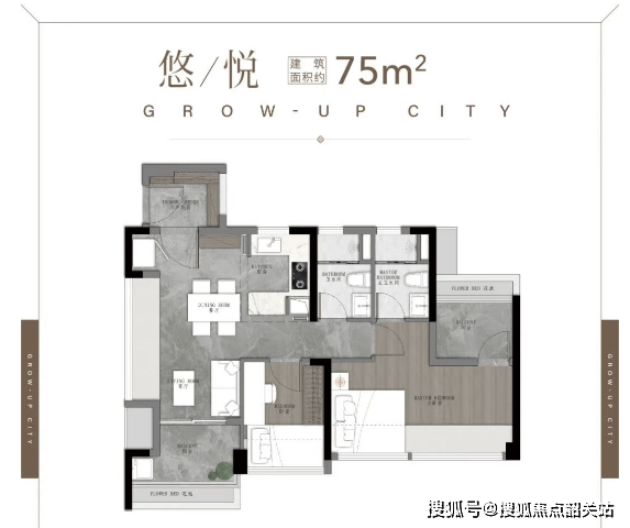 建面约75㎡三空间两卫:这是年轻人主城上车的首选户型,四开间朝南设计确保了充足的采光和通风,全明转角玄关提升了空间利用率,开放式厨房让小户型也能拥有开阔的视觉效果。景观阳台视野开阔,主套设计配备南北对流空间和独立衣帽间,在同面积段户型中十分罕见,完全能满足年轻夫妻的居住需求。