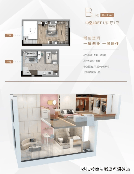 复式设计:每层层高达4.5米,采用复式两层设计,增加了居住空间的灵活性和舒适度。