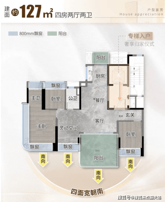 2. 建面约 127㎡四房两厅两卫 —— 明星爆款户型
