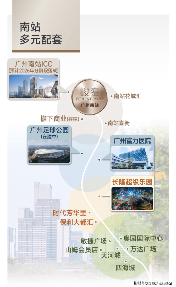 新鸿基地产以创新 TOD 开发理念,沿广深港高铁将成功经验带到广州。广州南站 ICC 作为其重要成果,集高端商场、顶级写字楼、星级酒店、公寓与品质住宅等多元业态于一体。如同在香港打造的 ICC 与高铁西九龙总站项目带动西九龙发展一样,广州南站 ICC 推动南站成为枢纽型国际商圈。峻銮作为住宅部分,秉承 “以心建家” 理念,延续香港标准,为业主提供高品质居住体验。