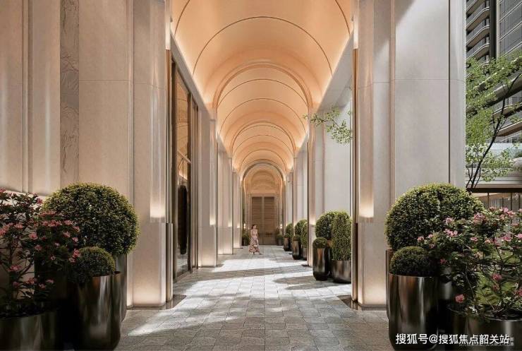 主门楼选用意大利Prada绿石材,这种珍贵的石材以其独特的色泽与纹理,赋予了建筑极高的辨识度与高级感。Prada绿石材不仅耐磨耐用,更蕴含着深厚的文化底蕴,象征着永恒与尊贵。立体式垂直园林、带瀑布造型的悬浮泳池,兼顾美观与功能,为社区增添了灵动的水景元素。9米抬高穹顶长廊灵感源自卢浮宫阿波罗永恒长廊,其宏大的尺度与精致的装饰,营造出强烈的仪式感与实用性并存的空间氛围。
