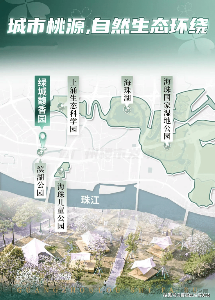 项目周边 3 公里范围内,覆盖海珠儿童公园、海珠湖公园、海珠国家湿地公园等大型生态配套,形成巨大的天然生态屏障,为业主提供丰富的自然休闲场景。