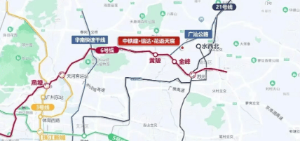 项目周边临近地铁6号线黄陂站与金峰站,依托6号线的便捷轨道交通,能够快速接驳广州各大区域,实现“半小时通勤圈”,满足日常通勤与出行需求。
