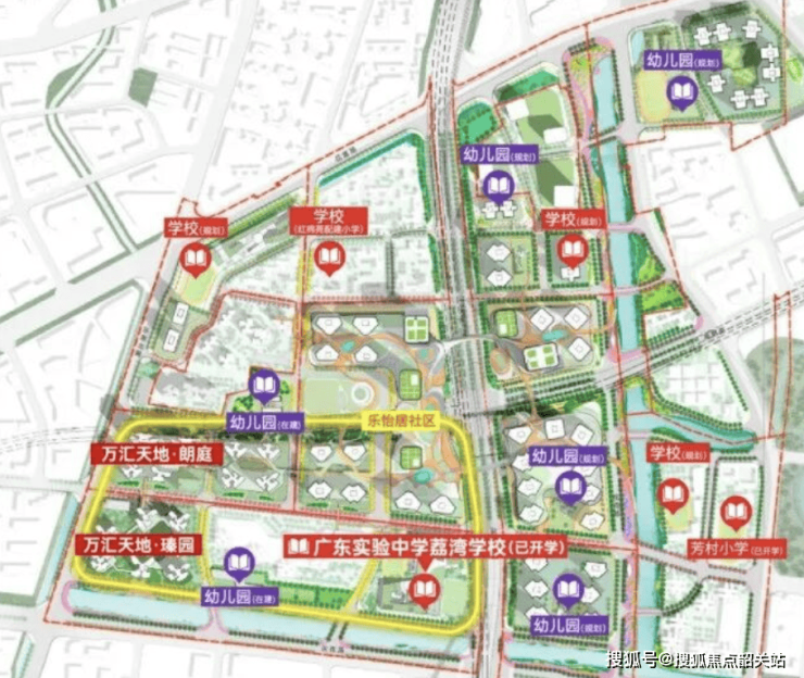 内部配建九年制省实验学校花地湾校区,小学36班,初中18班,但初中不直升,全区摇号入学。