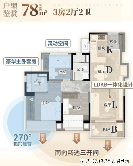 78㎡三房两卫:小户型设计,适合刚需家庭,空间利用率高。