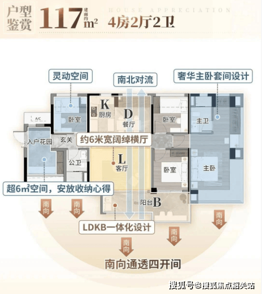 117㎡四房两卫:超大面宽,短进深,户户观景,使用率超100%。